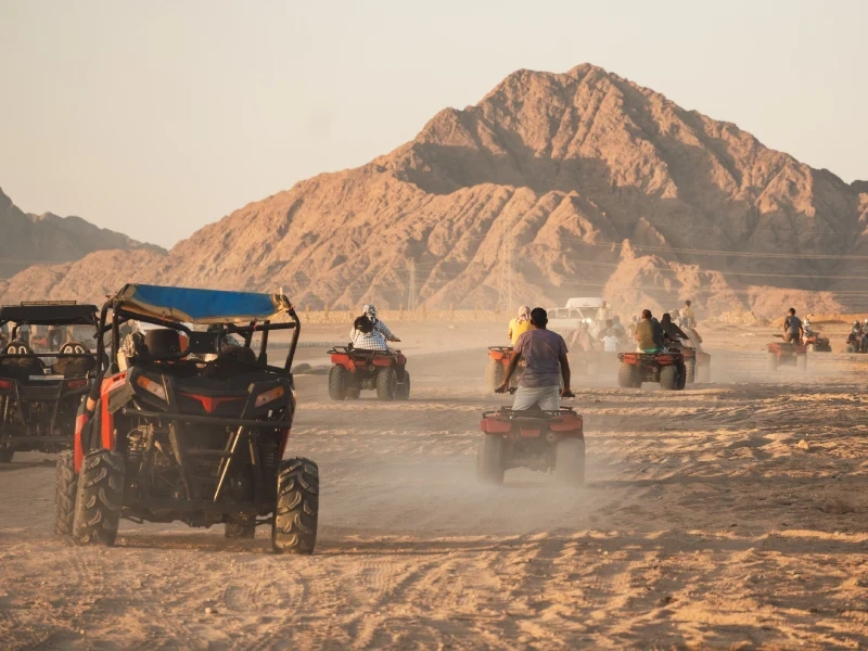 Les vastes étendues désertiques offrent un terrain extraordinaire pour les amateurs d'adrénaline. Hurghada propose des safaris combinant quad, buggy et balades à chameau avec des formules variant de 2 à 7 heures. Les prix démarrent à partir de 11,45 EUR pour une excursion matinale.