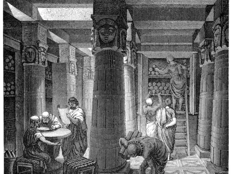 La bibliothèque d'Alexandrie en Égypte était l'institution culturelle la plus importante du monde antique. Refuge des intellectuels du pourtour méditerranéen, elle abritait autrefois plus de 700.000 volumes, ce qui en faisait la bibliothèque la plus prestigieuse de l'Antiquité.