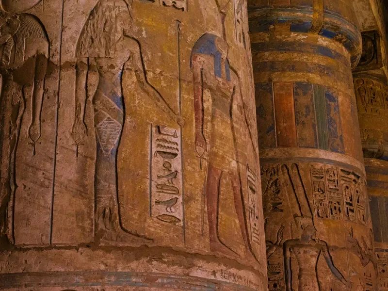 À Louxor, qualifiée de "plus grand musée à ciel ouvert du monde", les temples de Karnak et de Louxor déploient leurs colonnes monumentales dans une lumière dorée qui sublime les hiéroglyphes.