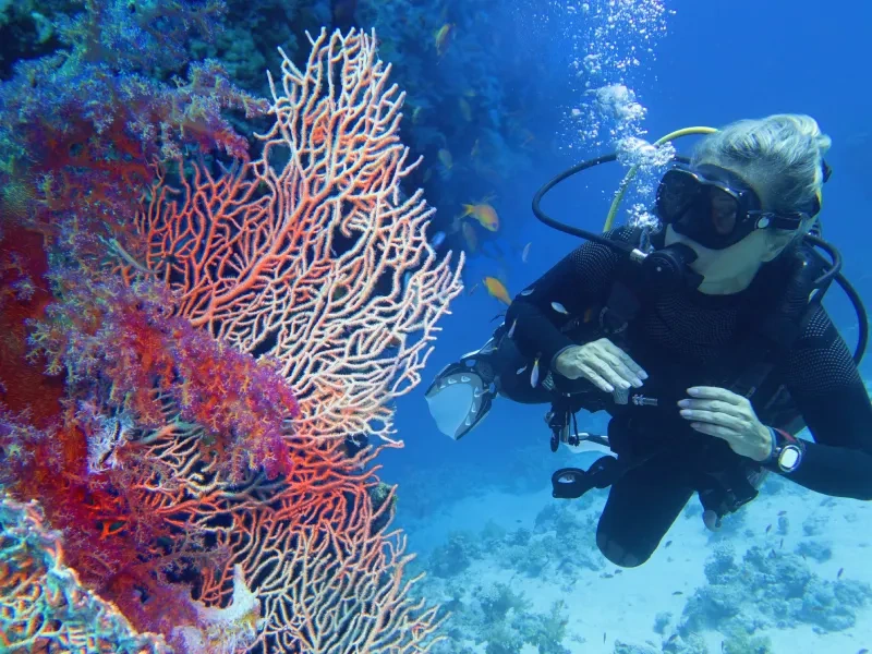 Plus de 300 espèces de coraux prospèrent dans ces eaux, dont beaucoup sont endémiques. Le parc national de Ras Mohammed, situé à 12 km de Sharm el-Sheikh, abrite plus de 1500 espèces sous-marines et plus de 200 espèces de coraux, ce qui en fait l'une des 10 meilleures destinations de plongée au monde.