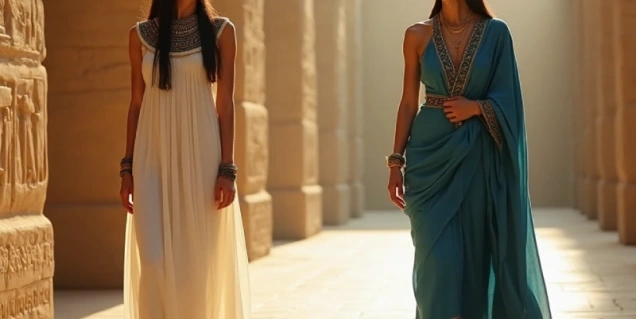Le vêtement le plus emblématique de l'Égypte ancienne est le pagne, appelé shenti pour les hommes, et la robe fourreau pour les femmes. Ces vêtements simples en lin blanc symbolisaient la pureté et s'adaptaient parfaitement au climat chaud.