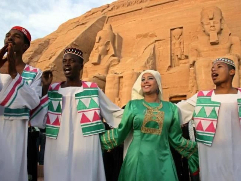 Le territoire nubien, niché autour d'Assouan, cultive des traditions linguistiques et culturelles distinctes. Les trois tribus principales - Al-Fadiga, Al-Orayqat et Al-Konoz - ont développé un langage vestimentaire aux teintes flamboyantes.