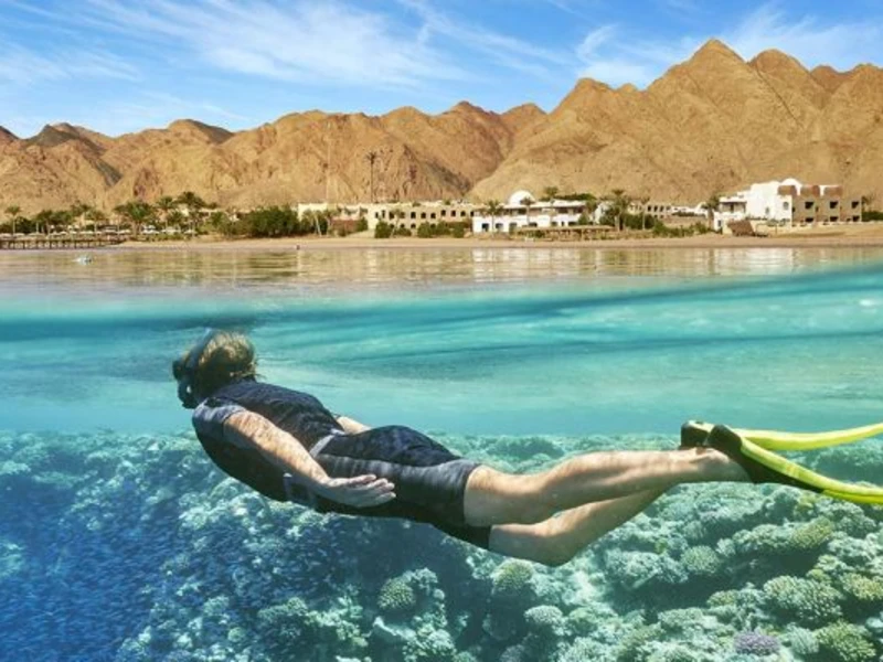 La plupart des sites sont accessibles directement depuis la côte, en jeep ou même à dos de chameau – une expérience photographique en soi ! Avec plus de 50 centres de plongée, Dahab permet d'explorer facilement les récifs coralliens qui descendent en profondeur.