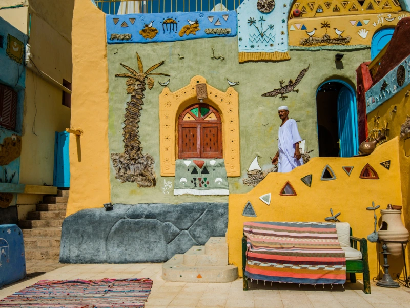 Gharb Soheil incarne l'authenticité nubienne à travers ses habitations aux façades colorées rehaussées de chaux blanche. L'accès à ce village traditionnel s'effectue par voie fluviale, permettant d'admirer au passage le mausolée de l'Aga Khan et la silhouette imposante de l'Old Cataract. L'hospitalité nubienne se manifeste dès l'arrivée par l'offrande d'un thé de bienvenue servi dans les demeures familiales.