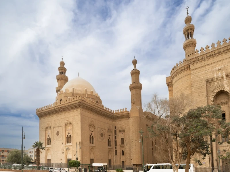 La Mosquée du sultan Hassan, construite pour plus d'un million de dinars entre 1356 et 1363, est considérée comme la mosquée la plus coûteuse de l'Égypte médiévale. Ce monument exceptionnel, comparable en importance aux pyramides de Gizeh pour la civilisation islamique, vous transporte au cœur de l'architecture mamelouke dans toute sa splendeur.