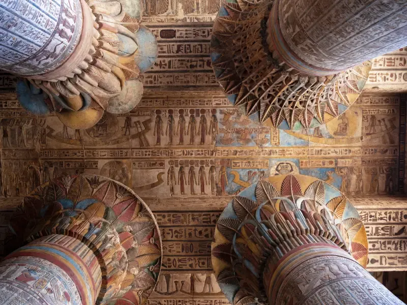 Les parois des tombeaux et des temples étaient couvertes de peintures et de bas-reliefs d'une qualité exceptionnelle, représentant des scènes religieuses, mythologiques et de la vie quotidienne. Ces œuvres constituent une source inestimable d'informations sur la civilisation égyptienne.