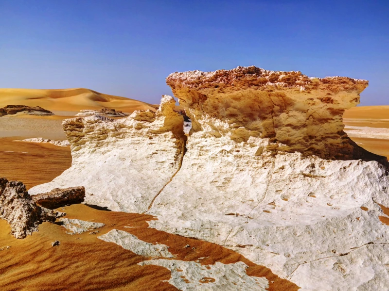 Autour de l'oasis de Farafra s'étend un véritable musée géologique à ciel ouvert, où la nature a sculpté des paysages d'une beauté saisissante et contrastée. Ces merveilles naturelles constituent les principales attractions de cette région isolée et attirent les voyageurs en quête d'expériences uniques.