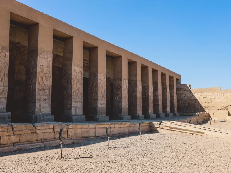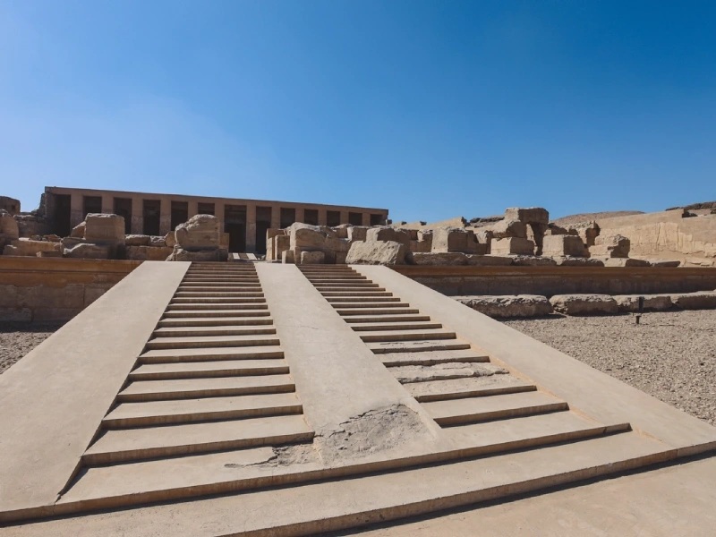 Abydos, ville sainte d'Osiris, abritait la sépulture présumée du dieu. L'Osireion formait le cénotaphe proprement dit du pharaon dans ce contexte sacré. Le sanctuaire servait de lieu symbolique de renaissance, où les rituels funéraires garantissaient la résurrection du défunt.