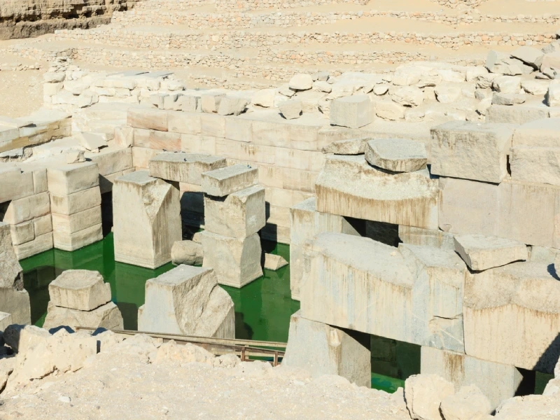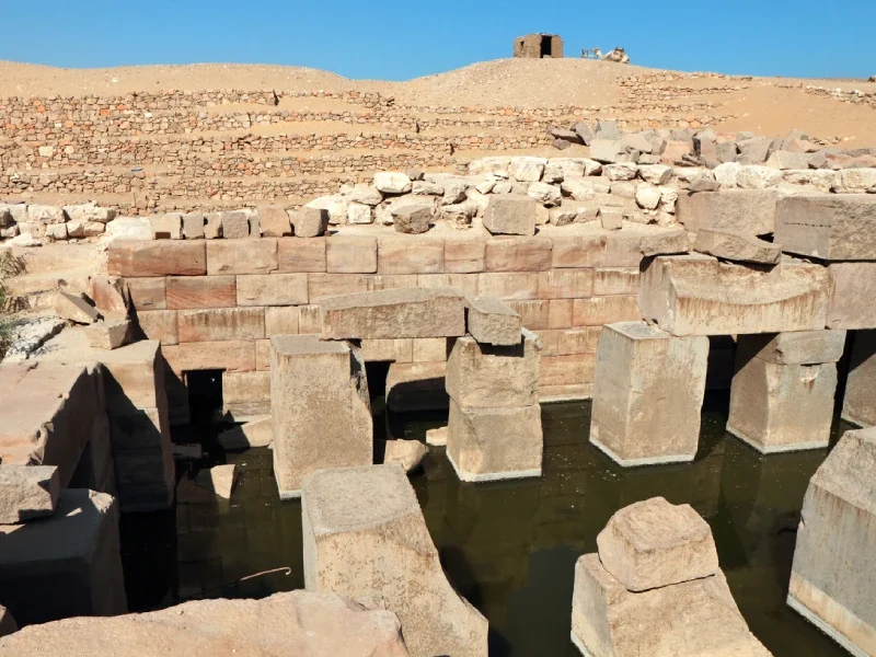 Cette submersion permanente empêche de déterminer la profondeur exacte du monument et masque ce qui se cache sous la surface. L'eau maintient ainsi une part de mystère sur les fondations réelles de l'Osireion.