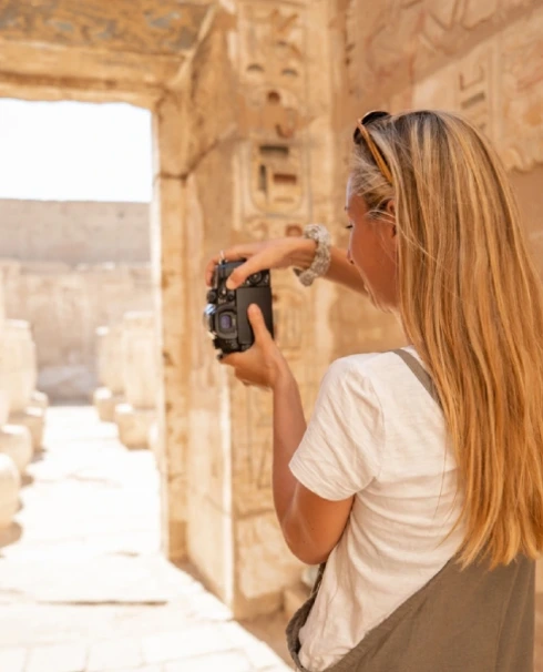 Puis cap sur le Temple majestueux d’Hatchepsout à Deir el-Bahari, et arrêt aux Colosses de Memnon.