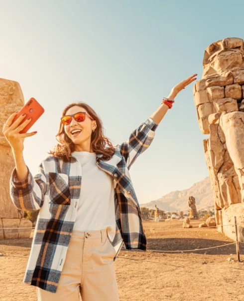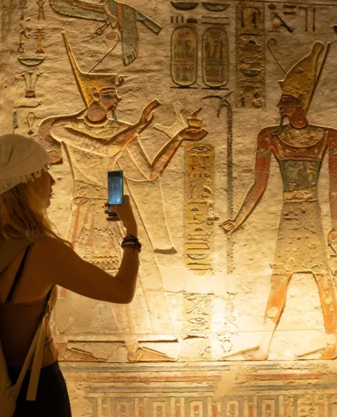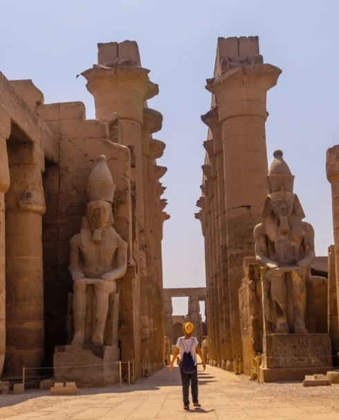 Exploration de la Vallée des Rois et de ses tombes royales, visite du temple d’Hatchepsout et arrêt devant les Colosses de Memnon.