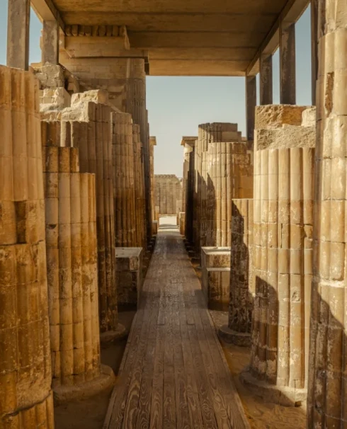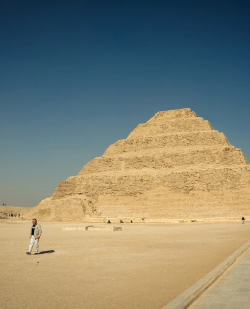 Votre journée débute par la visite de Saqqarah, berceau des pyramides, avec la célèbre pyramide à degrés du roi Djoser, conçue par l’architecte Imhotep. Vous explorez aussi des tombes fascinantes aux décors intacts.