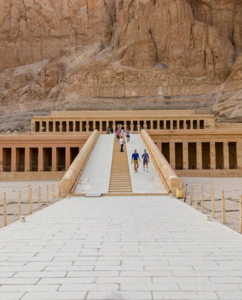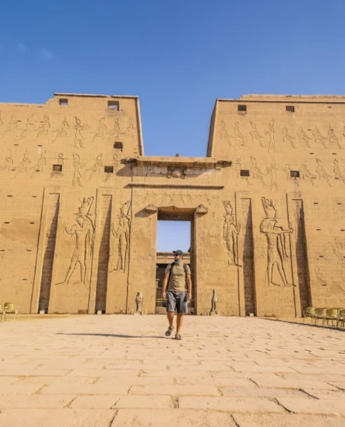 Vous explorez trois tombes de la Vallée des Rois, puis le Temple d’Hatchepsout, unique femme-pharaon, avant de saluer les Colosses de Memnon. Navigation vers Edfou au crépuscule.