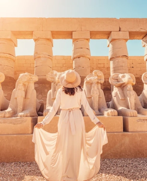 Vol en montgolfière au lever du soleil : un regard d’aigle sur la vallée des rois. Visite du temple de Louxor, suivi d’une marche silencieuse vers Karnak via l’allée des Sphinx.